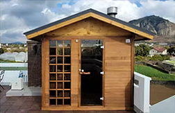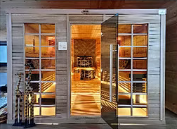| 1420 글라스프론트 사우나룸 (이스펜 목재, 피닉스 스토브, 2단 벤치) | 빌트인 사우나룸 C (일본산 히노끼 목재, 사보니아 스토브, 1단 벤치) | 2020 글라스프론트 맞춤 사우나룸 (적삼목 목재, 타워힐 스토브, 2단 벤치) | 빌트인 사우나룸 D (웨이브 벤치는 국내 제작 불가 100% 수입) |