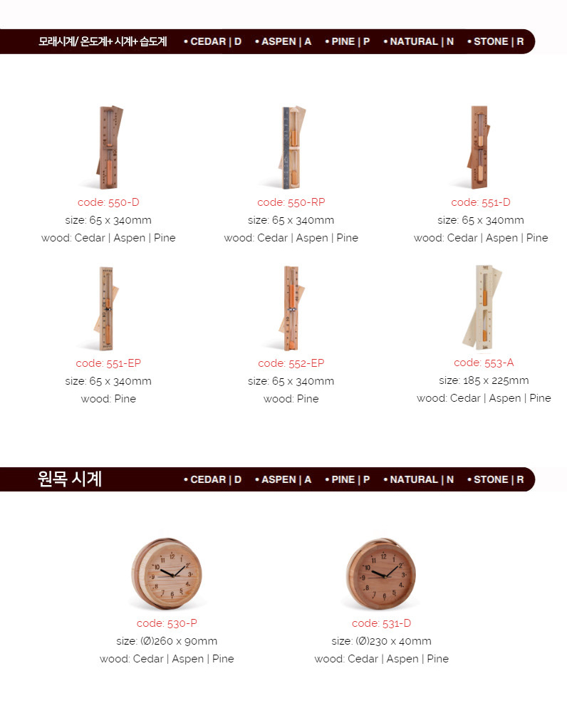 모래시계와 260-TBP(온도계 + 습도계 + 시계) 모델은 실내외 사용이 가능하고 그외의 모델은 실외에서만 사용이 가능합니다.