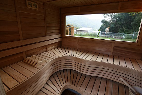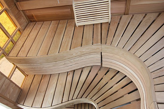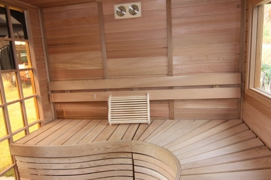 창과 더불어 어느곳에 앉아 사우나를 즐기더라도 자연을 즐길수 있도록 해주었습니다.